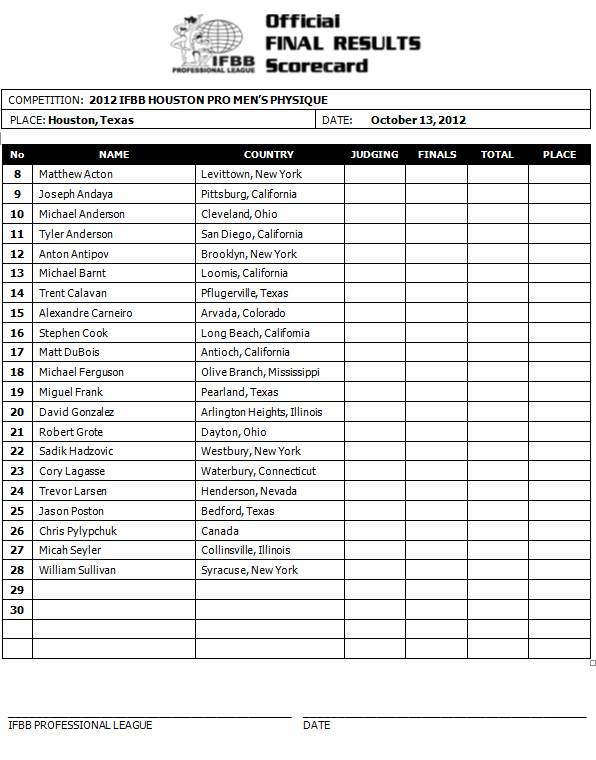 The IFBB heads to Houston this Saturday for the 2012 Houston Pro Figure, Bikini, Men’s and Women’s Physique and Wheelchair Championships, with nearly 80 athletes ready to compete in the five divisions.