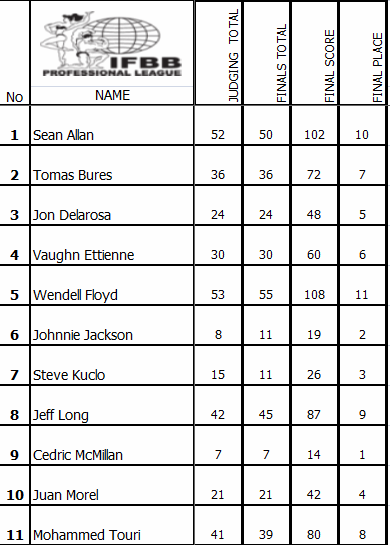 The contest’s secondary story line was who among the talented rookie trio of Steve Kuclo (2011 NPC USA Super Heavyweight and Overall winner), Juan Morel (2011 USA Super Heavyweight runner up, 2011 IFBB North American Overall winner) and John Delarosa (2011 NPC USA Heavyweight winner) would come out of the gates the fastest. Just like he did at the USAs, Kuclo won that battle again, just like he did at the USAs – but not by much. Only one point separated Kuclo and Morel. Delarosa finished 5th in what should be the first of many memorable matchups between the three.