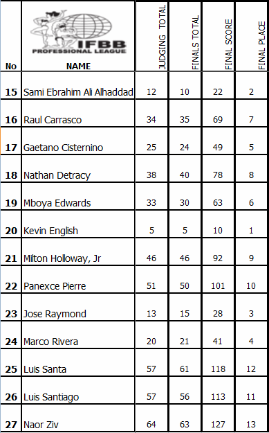 This year, Raymond was expected to provide English with his toughest challenge, but Sami Ebrahim Ali Alhaddad apparently didn’t get that memo. Alhaddad, the winner of the first-ever Amateur Olympia in 2011, slid in to the runner-up spot instead, beating Raymond out by six points.