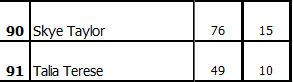 The results were a carbon copy of Pittsburgh, as Jamie Baird and Yeshaira Robles once again finished 2nd and 3rd, respectively.