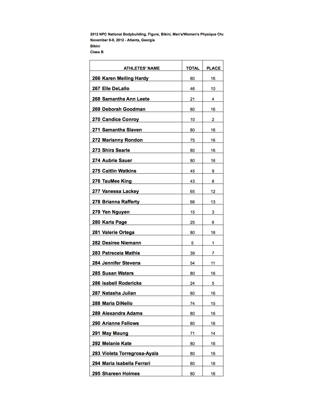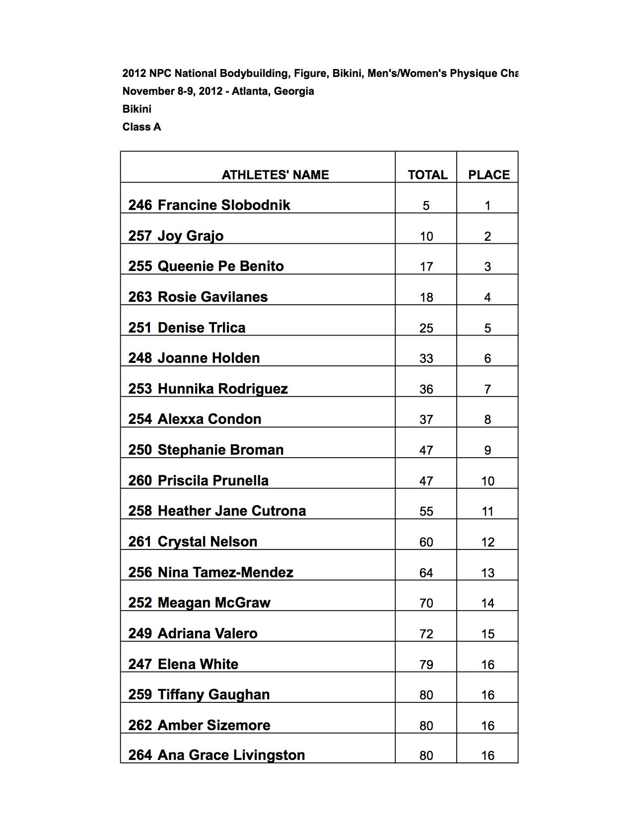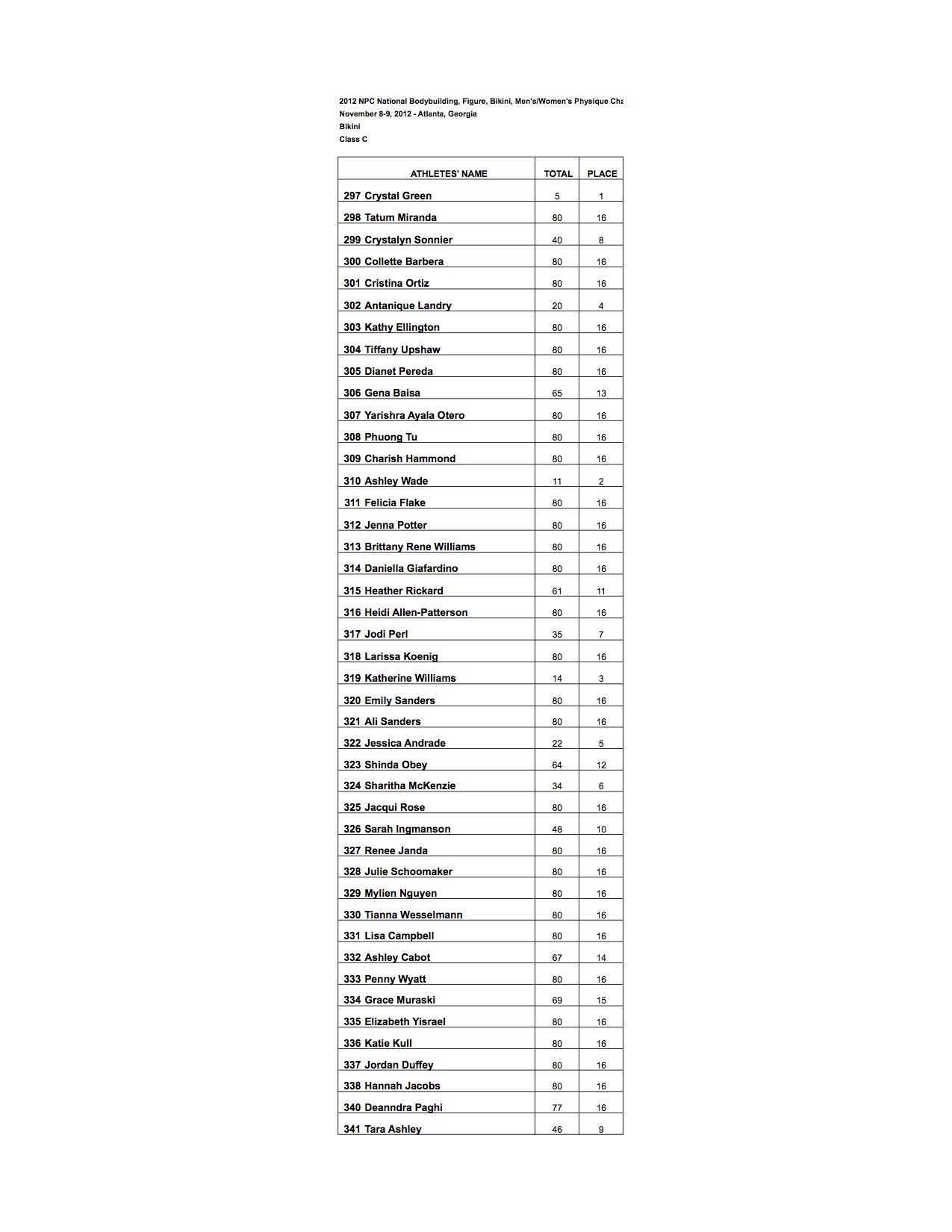 2012 NPC Nationals Bikini official score sheets!