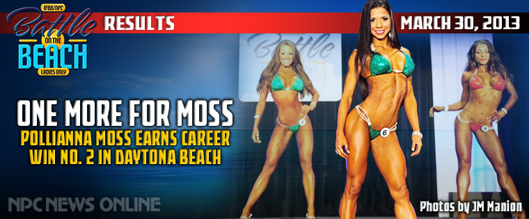 With just four IFBB contests under her belt and just one month into her first full season as a pro, Pollianna Moss hasn’t entered many competitions playing the role of savvy veteran. But that’s just what she did amidst a rookie-heavy lineup en route to her second career win on Saturday at the Battle of the Beach Bikini Championships in Daytona Beach, Florida.