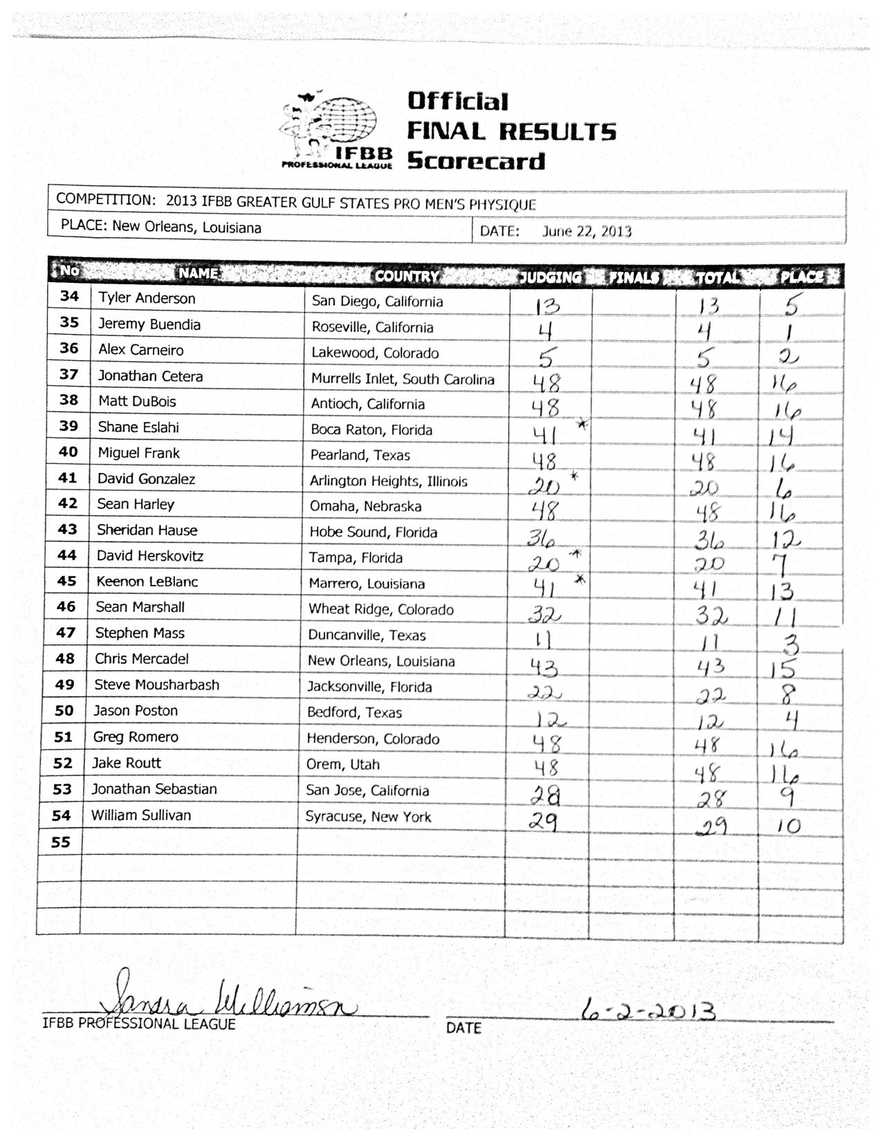 2013 IFBB Greater Gulf States Day 2 Final Report & Galleries