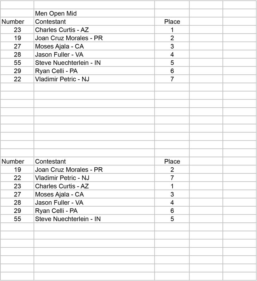 August 30-31st – 2013 IFBB North American Championships Official Score Sheets for the Men’s Divisions.