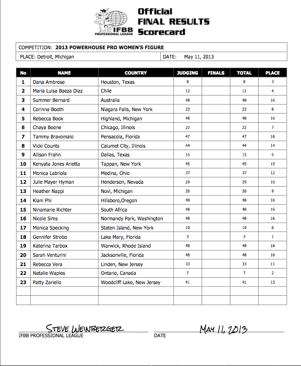 Gennifer Strobo won for the second time in as many weeks while Anton Antipov and Ashley Kaltwasser each notched the first wins of their respective careers at the 2013 IFBB Powerhouse Classic in Novi, Michigan on Saturday night. Strobo’s win in the Figure division comes one week after her victory at the Pittsburgh Pro and is the fifth of her career. Canada’s Natalie Waples placed second, while Dana Ambrose finished third.