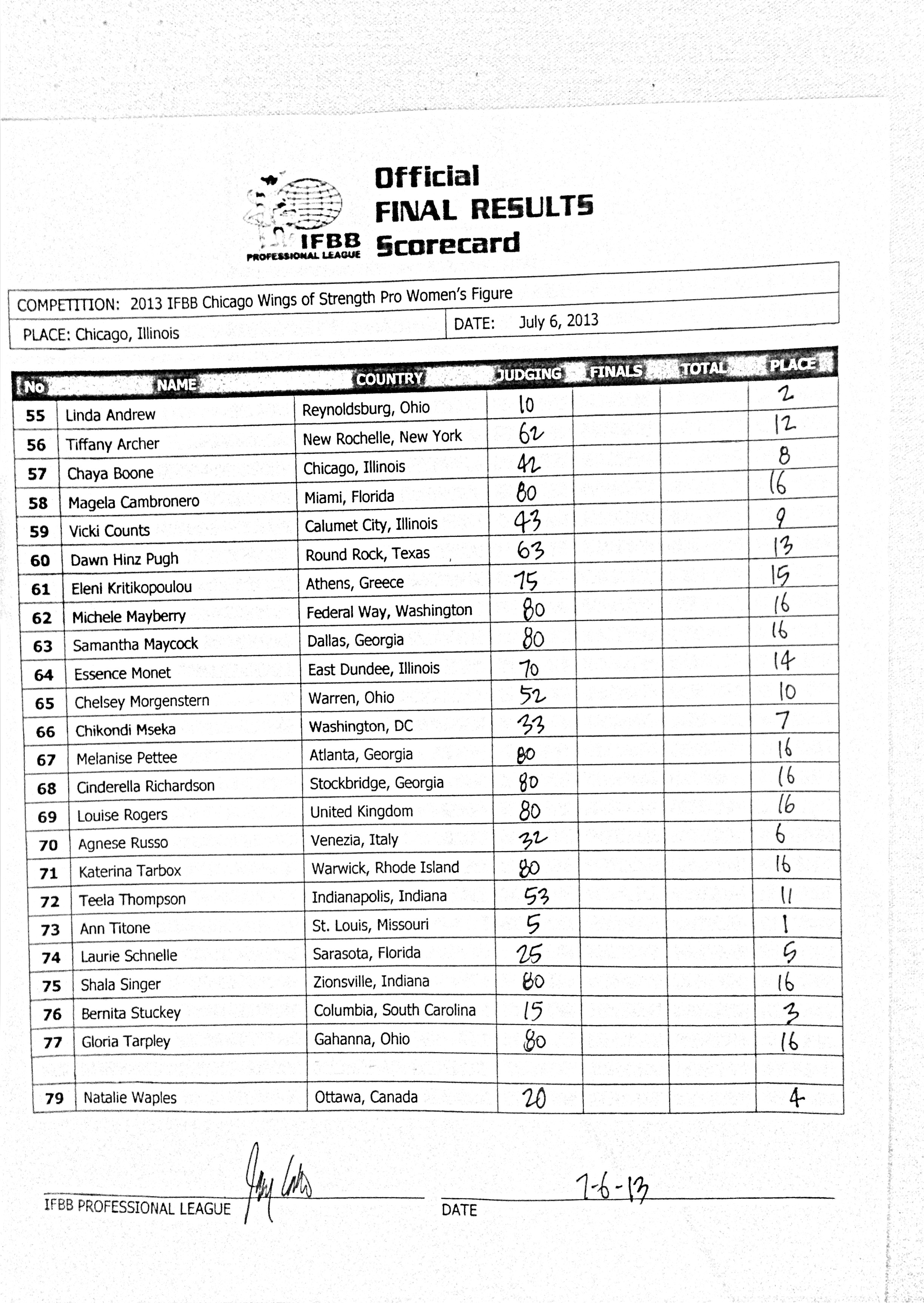 ArticlesContestsFeatures 2013 The IFBB Wings of Strength Chicago Pro-Am: Official Score Sheets July 6, 2013 Share on Facebook Tweet on Twitter July 5-6th – The IFBB Wings of Strength Chicago Pro-Am Official Score Sheets. See the full galleries here! Men’s Bodybuilding Men’s 212 Women’s Bodybuilding Figure Women’s Physique