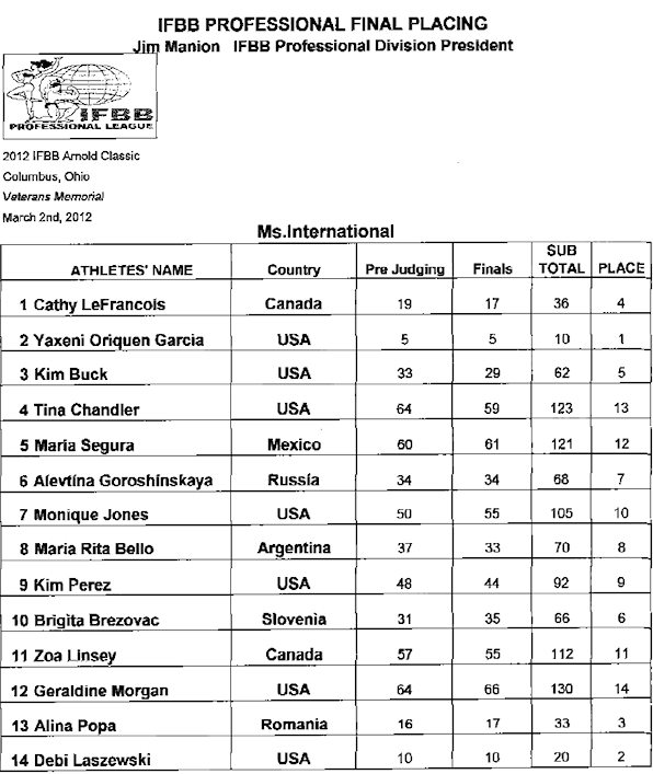 Oriquen last won here in 2008. She faced a tough test from Debi Laszewski, who finished as the runner up for the second time on her career. Laszewski also placed second at the Figure International in 2009.