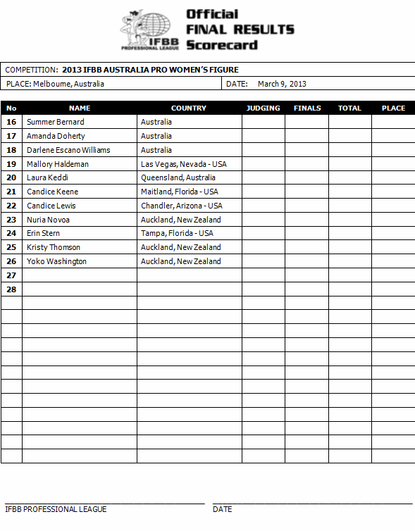 Erin Stern enters as the two-time defending champion in Figure, but she isn’t the favorite this time around. That distinction goes to Candice Keene, who won the Figure International a week ago. Stern finished third behind Keene and Heather Dees a week ago, the first time she failed to make the top two in a contest since 2009.