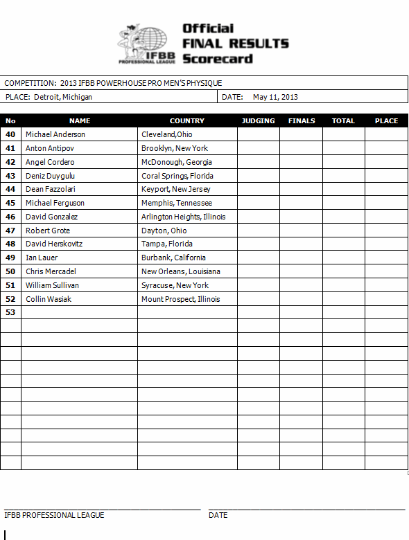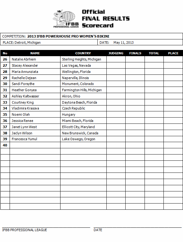 Forty-nine competitors will take the stage in three divisions – Figure, Bikini and Men’s Physique. In Figure, four of the top seven from last week’s Pittsburgh Pro will compete, including winner Gennifer Strobo. Strobo, who will look to notch back-to-back wins for the first time in her career, will have to contend with a lineup that includes a pair of veterans with Olympia experience making their first appearances of the year in Monica Specking (2012 Optimum Classic winner) and Allison Frahn.