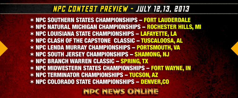 Click here for information on all the shows this weekend July12,13 and for future NPC and IFBB Events.