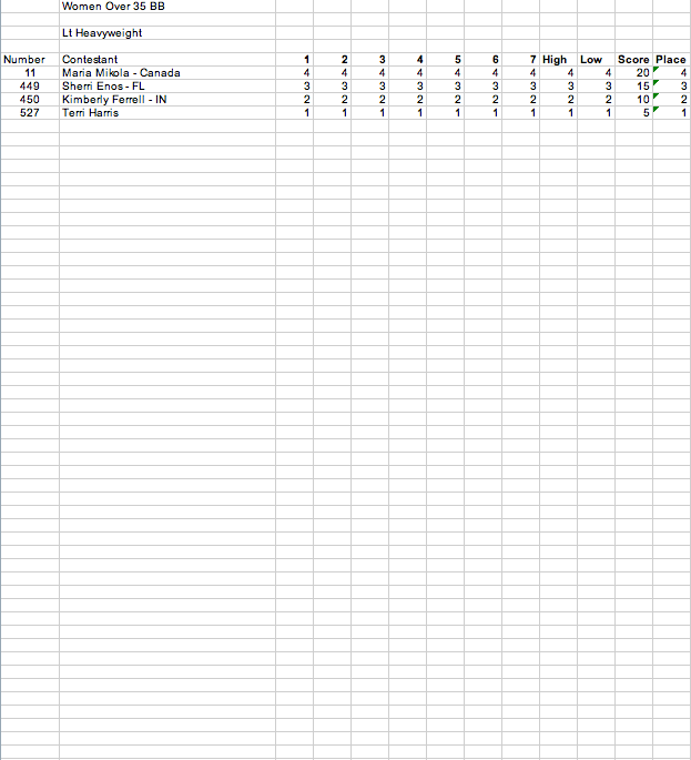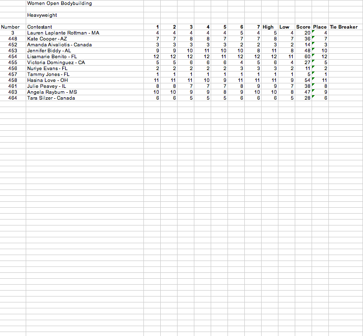 Check out all of the Women’s Bodybuilding official score sheets from the IFBB North Americans!