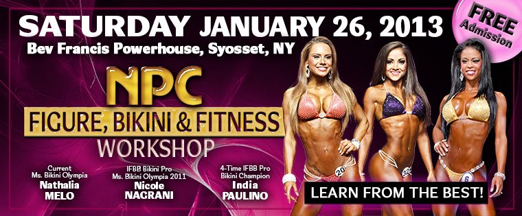 The NPC Figure, Bikini & Fitness Workshops are back in 2013, starting on January 26 with a star-studded event and Bev Francis Powerhouse Gym in Syosset, New York.