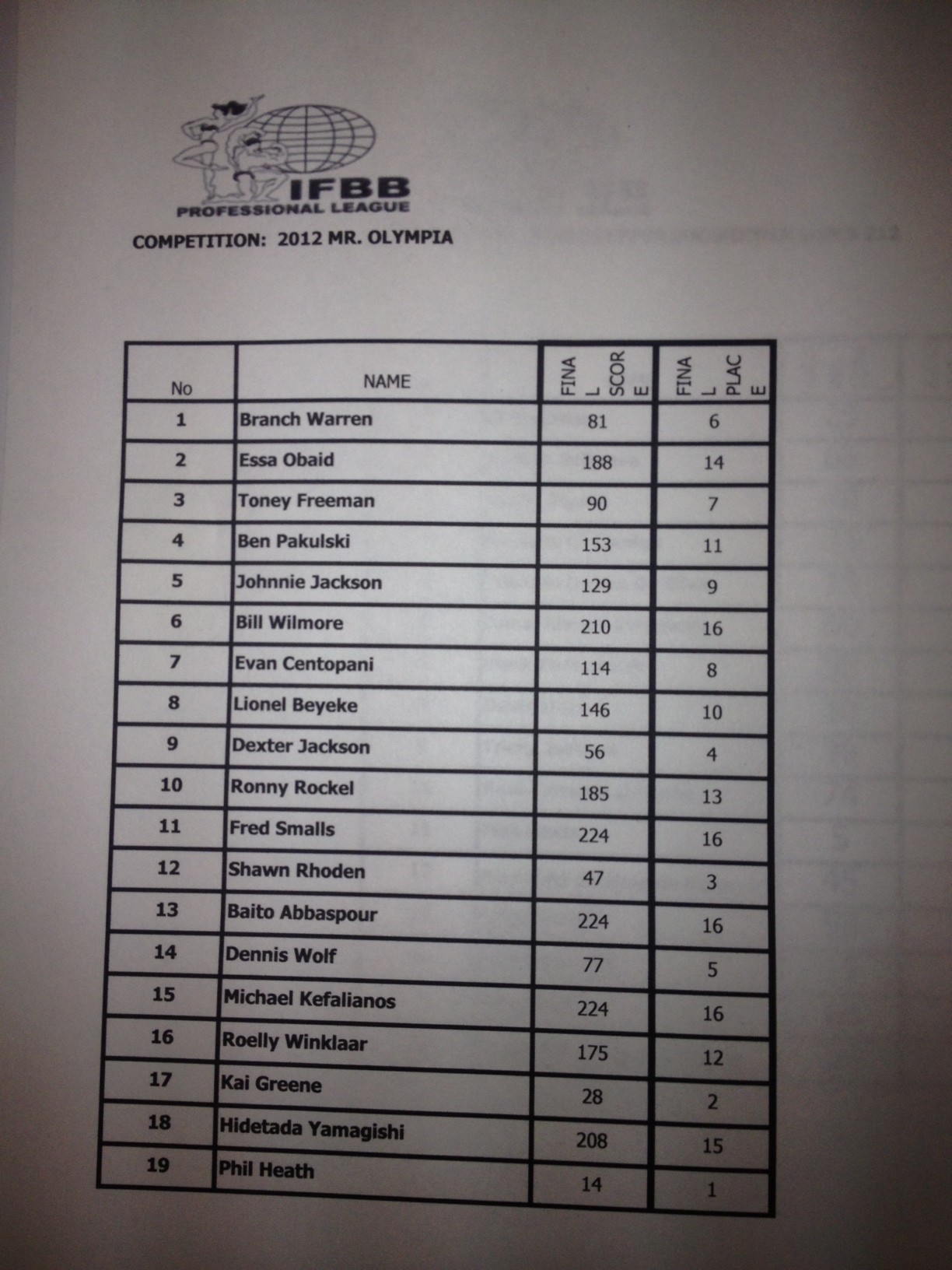 Here are the Final competitors for this year’s Mr.Olympia.