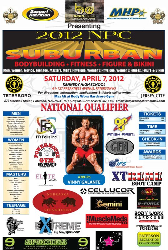 A week after the talent-laden Steve Stone New York Metropolitans, the Suburban Championships will feature some of the best in the Tri-State area. IFBB Pro Vinny Galanti is the featured guest poser.