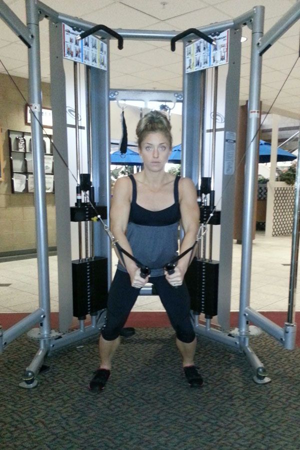 Holland says: “I like to alternate crossing my hands at the bottom of the exercise for that extra push. I always do a warm-up set with each exercise to help prevent injury. Have a partner help you drop the weight for a drop set on your last rep- performing drop sets allows you to incorporate a high-intensity exercise into your weight lifting regimen and help shock your muscles to create additional hypertrophy. Drop sets also increase your heart rate, which helps burn fat!”