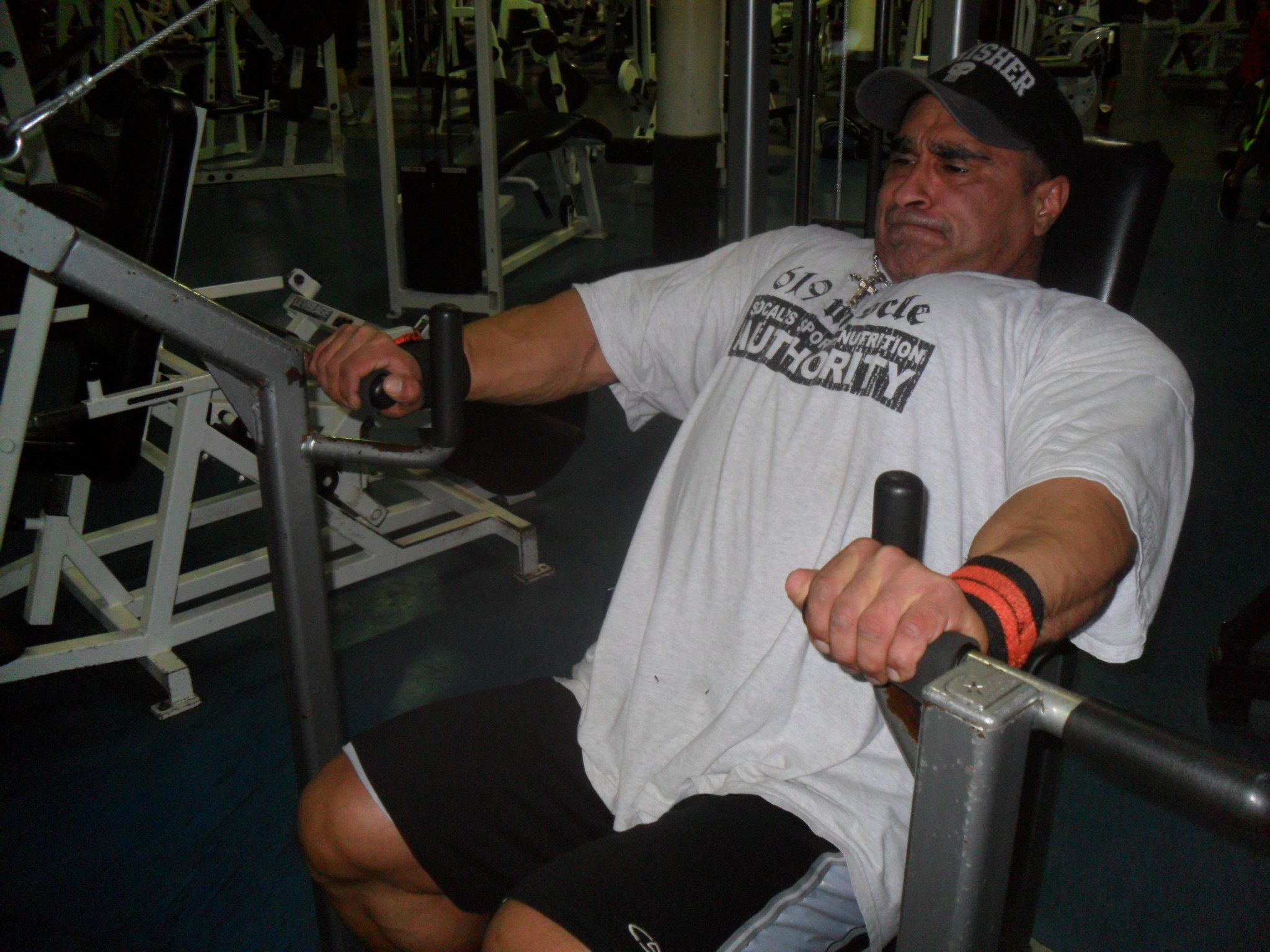 Pete says “On my heavy movement, and often on the secondary heavy movement, I’ll use forced reps to dig deep into the muscles. My spotter will assist me only as much as needed to help keep me moving in the concentric phase of the movement, to squeeze out 1-2 assisted “bonus” rep to be sure that we’ve exhausted every single lingering muscle fiber in this “attack” plane of movement.”
